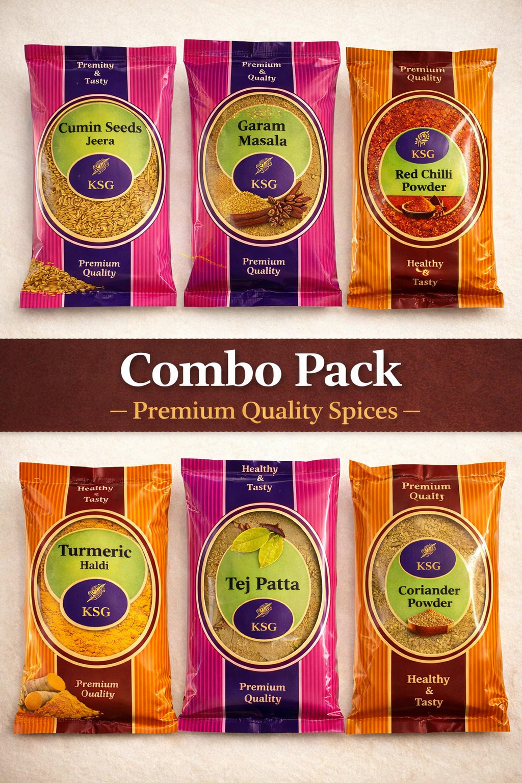 Experience the essence of authentic flavor with our handcrafted, cold-pressed spices, made the traditional way right at home. Each spice—chili powder, turmeric powder, coriander powder, garam masala, cumin seeds, and tejpatta (bay leaf)—is carefully sourced, sun-dried, and stone-ground in small batches to preserve its natural oils, aroma, and nutrients.