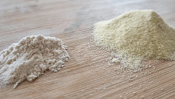 White semolina, commonly known as sooji or rava, is a coarse flour made from durum wheat. It has a slightly grainy texture and a pale white to cream color.